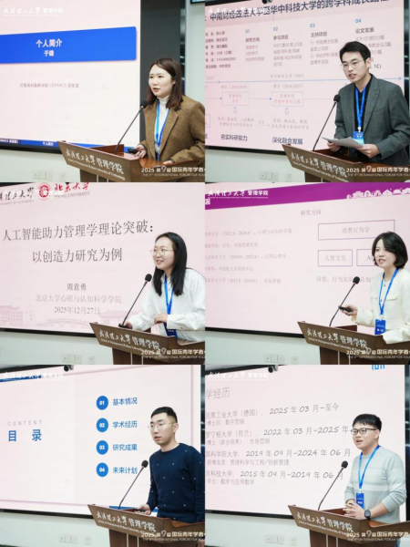 本次肉番 分论坛通过学院教职工和校友进行广泛宣传,面向海内外广泛邀请青年学者参与,共收到简历58份。学院专家组秉持着高标准、严要求的原则,从中选拔出6名青年才俊参与本次活动。来自法国巴黎第一大学的于璐博士、华中科技大学的张心泽博士、北京大学的周意勇博士、清华大学的钱一铭博士、武汉大学的褚军博士、德国慕尼黑工业大学的谭雄恺博士,分别围绕各自研究领域的研究方向,踊跃分享自身的研究成果。