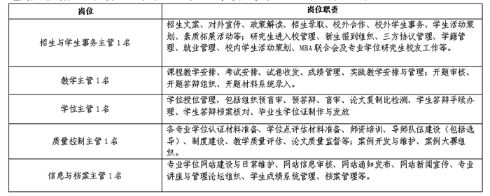 负责开展专业学位研究生的日常管理、教育和服务工作,主要包括学籍、培养、学位、学生事务等管理。具体如下:
