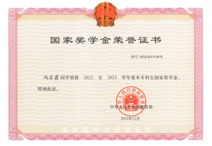二十一载披星戴月,二十一载凯歌而行。千难万险浑不怕,守得云开见月明。从成功推免至南京大学继续深造再到荣获全校仅10位的最高荣誉——卓越奖学金,冯启霞已独立撰写论文两篇、省级国创立项两项、参与发明专利三项、团体标准两项、国家级奖项七项、省级奖项四项、获得中国国际大学生创新大赛国家银奖、全国高校商业精英挑战赛全国一等奖等等。